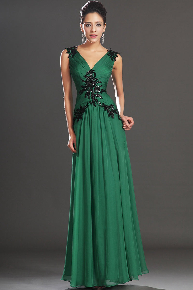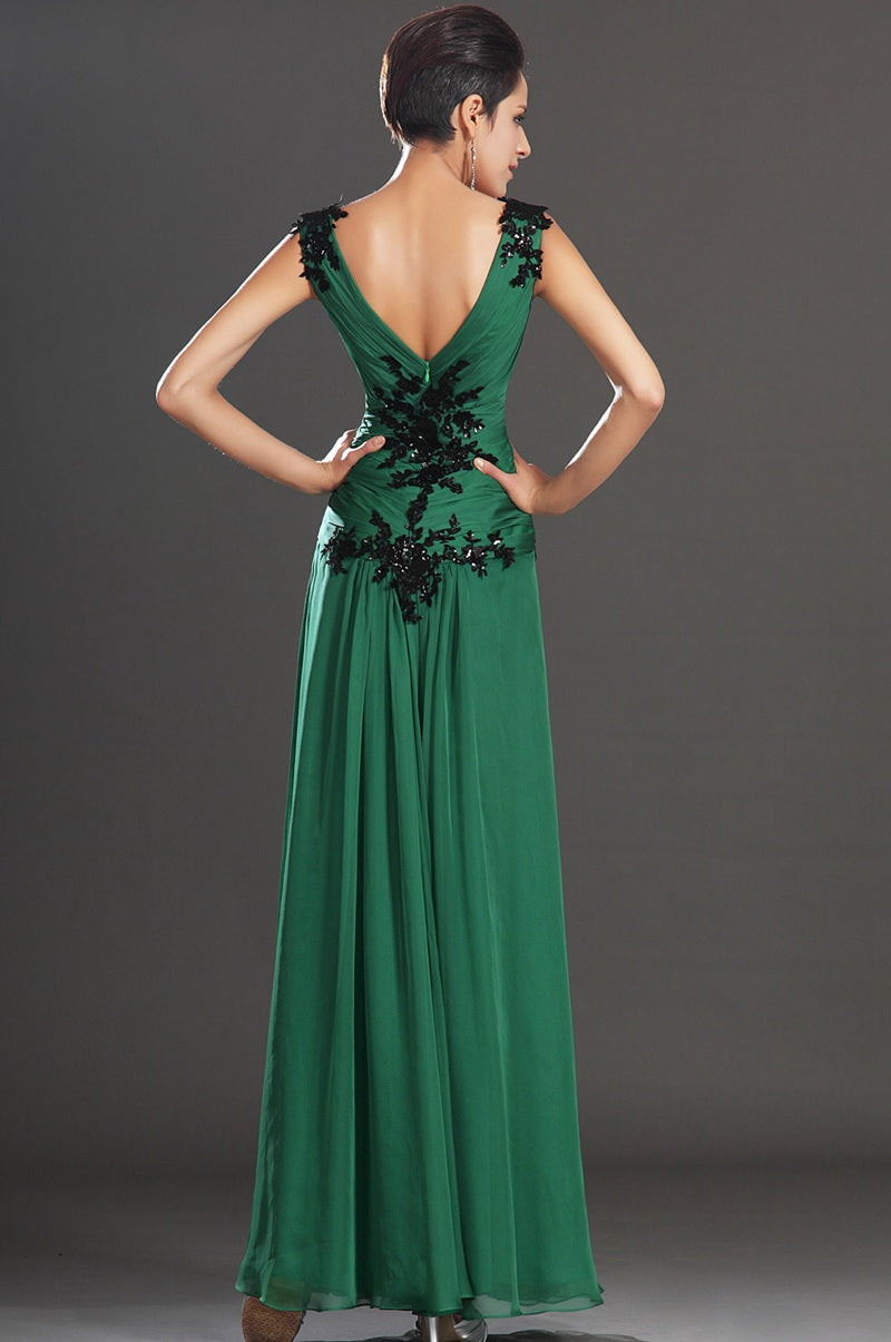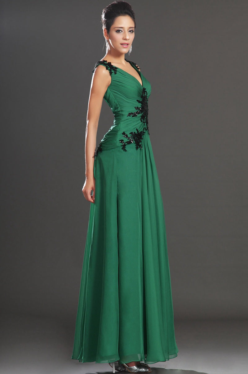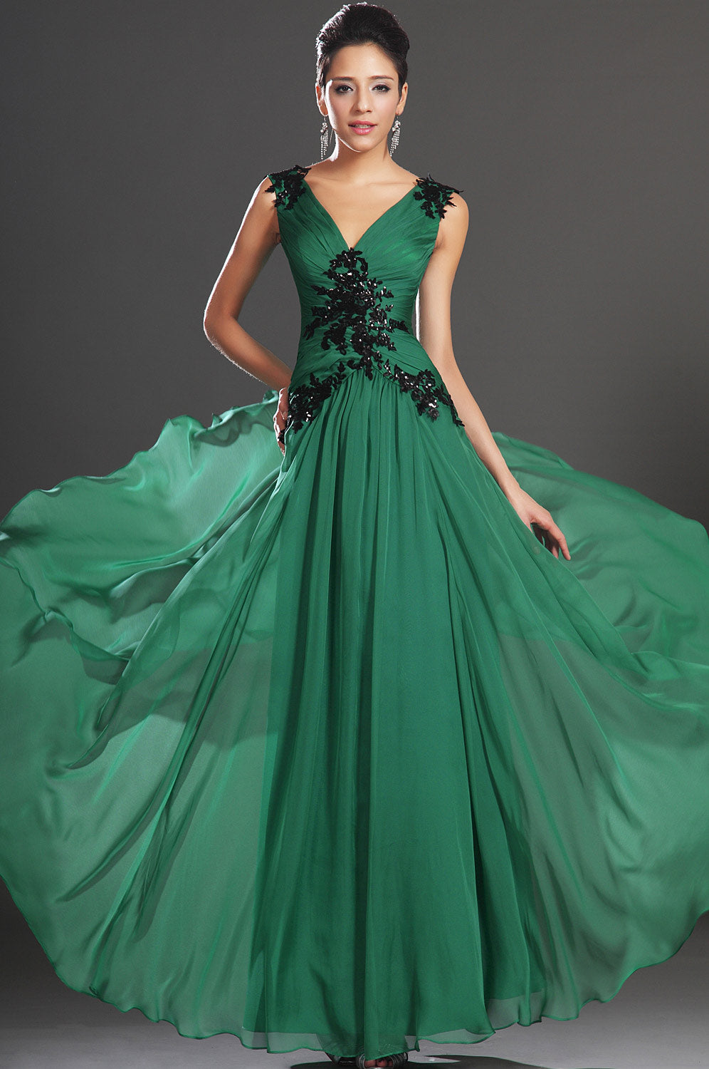 A-Line Dark Green Chiffon V-neck With Appliques Bridesmaid Dress(UKBD03-519)