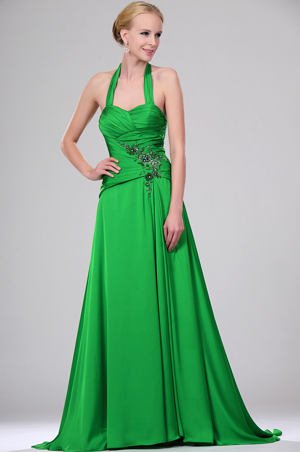 A-Line Forest Green Chiffon Halter With Appliques Bridesmaid Dress(UKBD03-456)