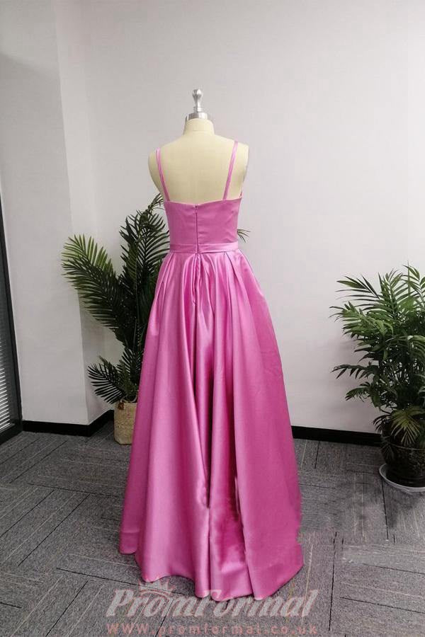 A Line Spaghetti Straps Split Champagne Prom Dress JTA7241