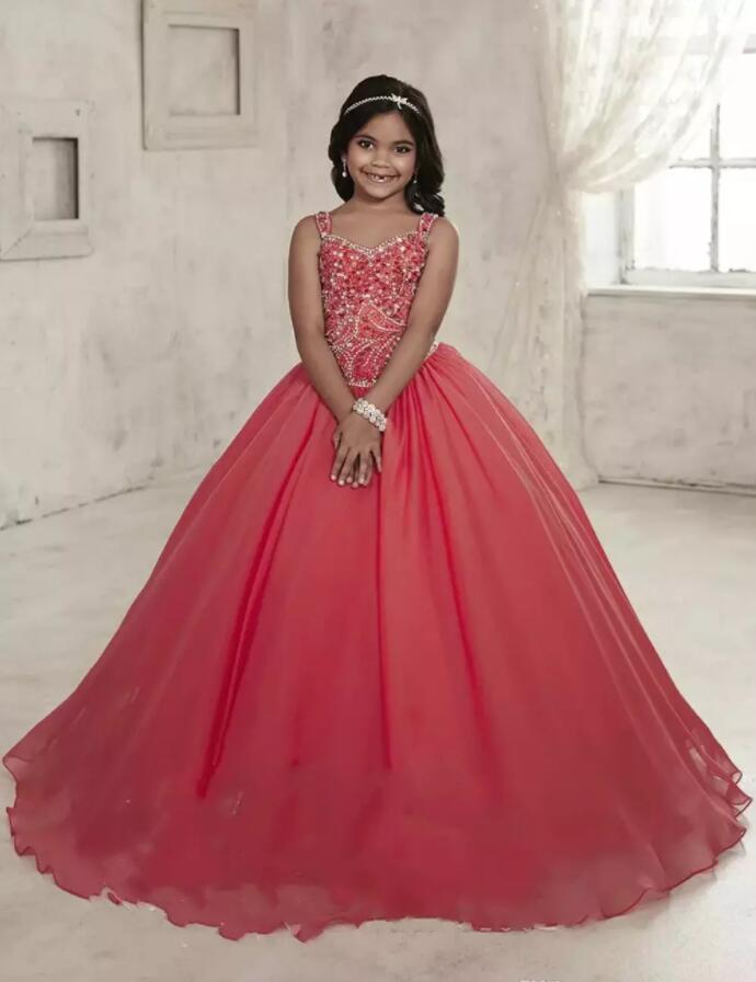Ball Gown Beading Red Kids Prom Dress CHK006
