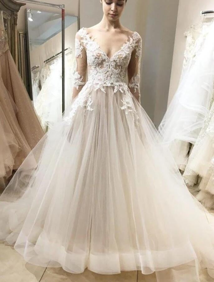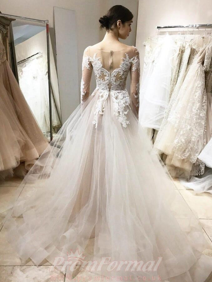 Ball Gown Long Sleeve Lace Tulle Wedding Dress BWD187