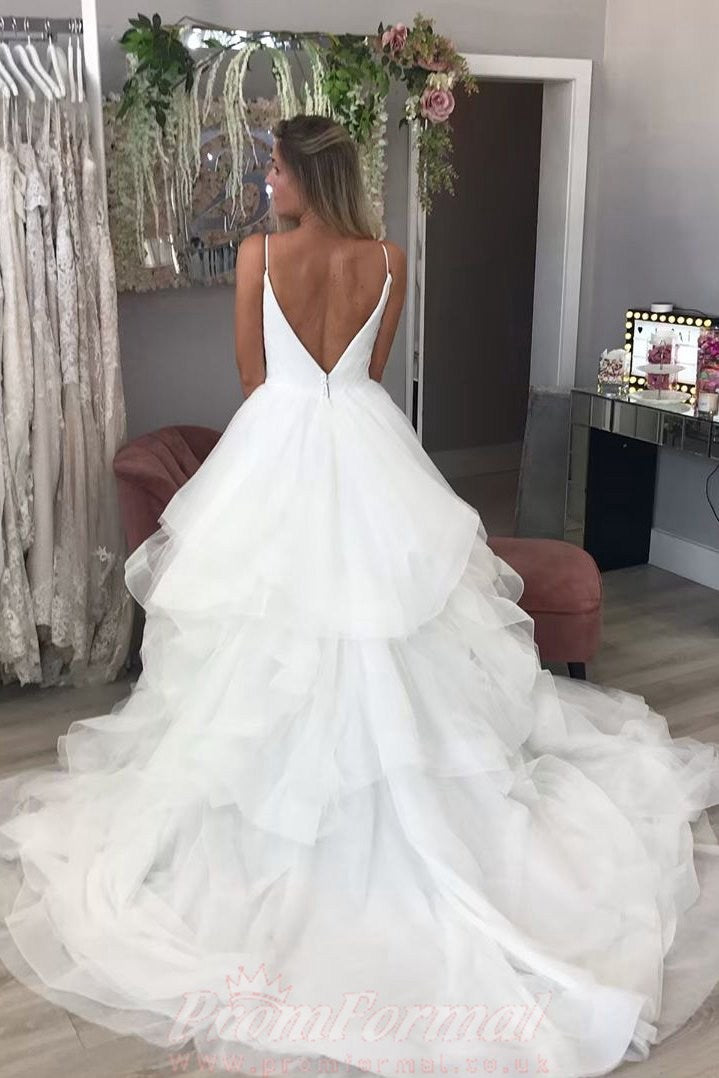 Ball Gown V Neck Spaghetti Straps Open Back Wedding Dress BWD016