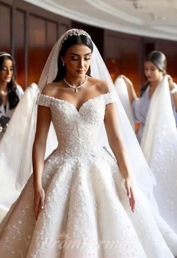 Chic Off-shoulder Floral Appliques Lace Ball Gown Wedding Dress BWD027