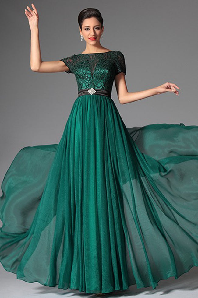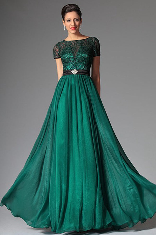 Dark Green Short Sleeve Lace Mother Formal Bridesmaid Dress BDJT1442