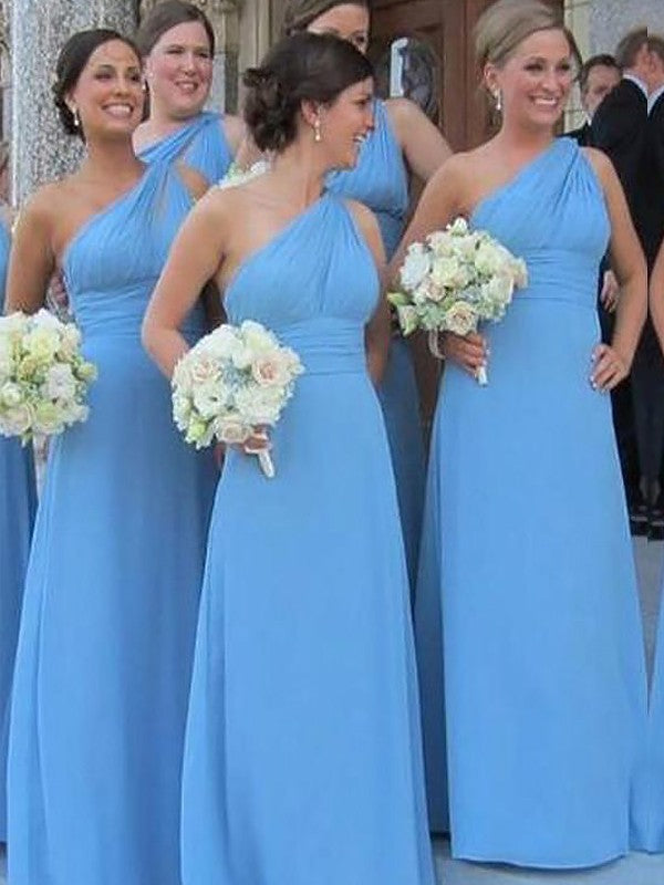 GBD163 Sheath Blue One Shoulder Chiffon Floor Length Bridesmaid Dress