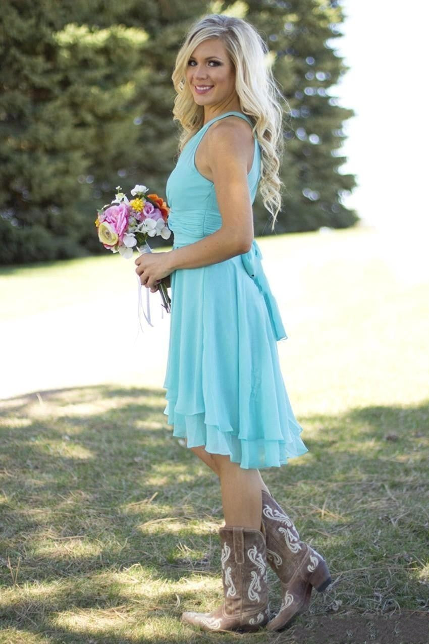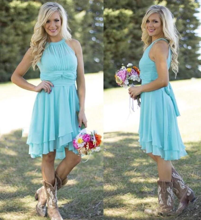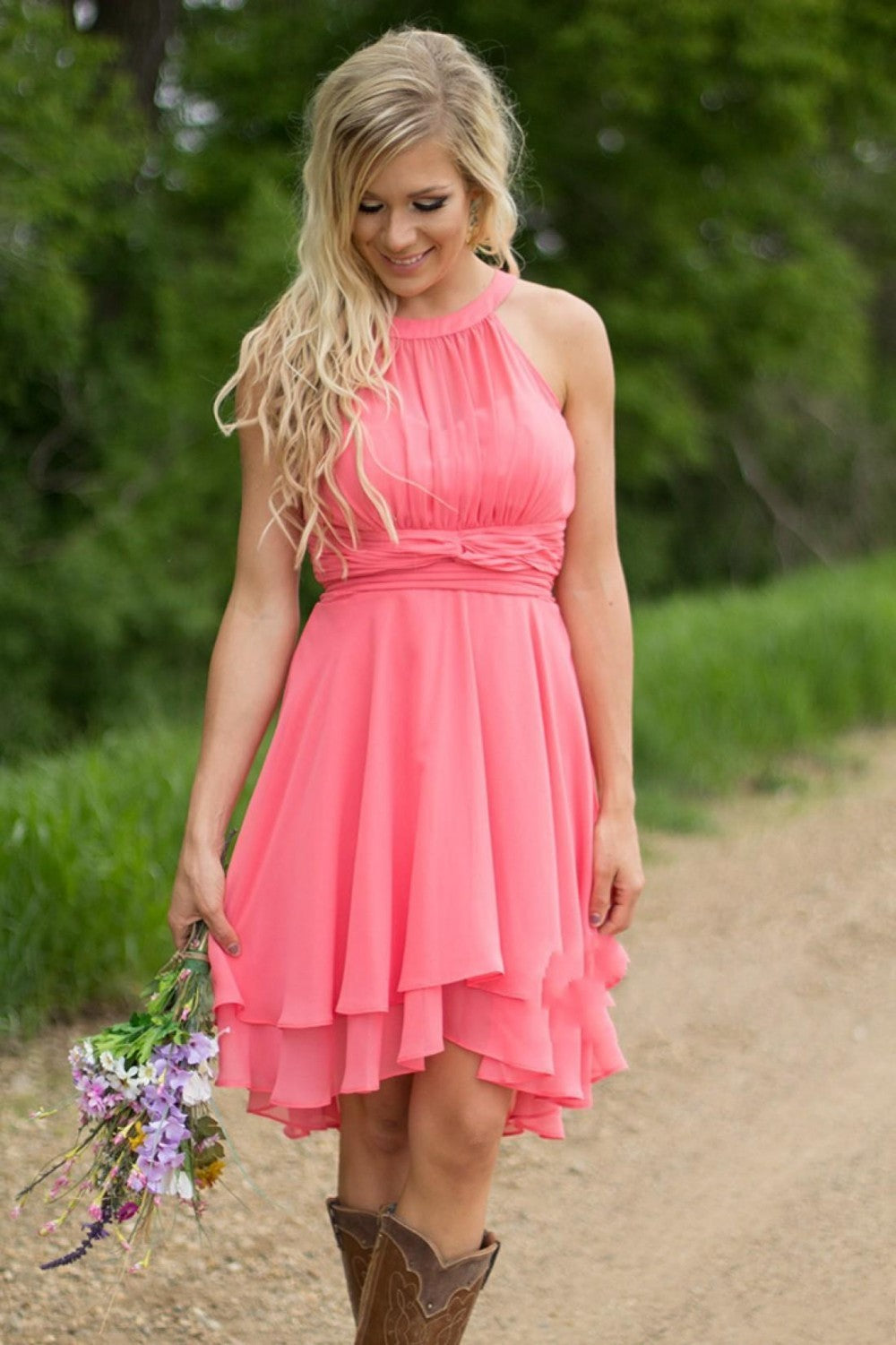 GBD242 Coral Short Watermelon Country Bridesmaid Dress with Cowboy Boots