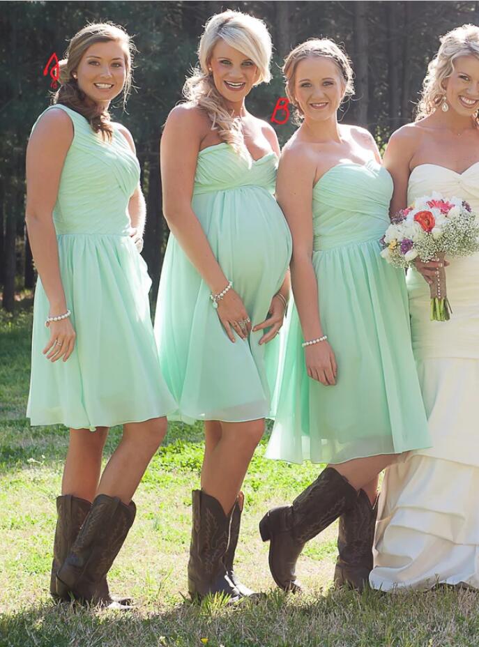 GBD249 Short Sage Green Sweetheart Country Bridesmaid Dress with Cowboy Boots