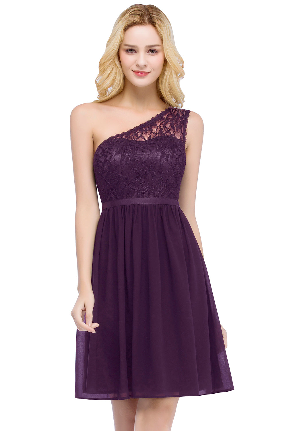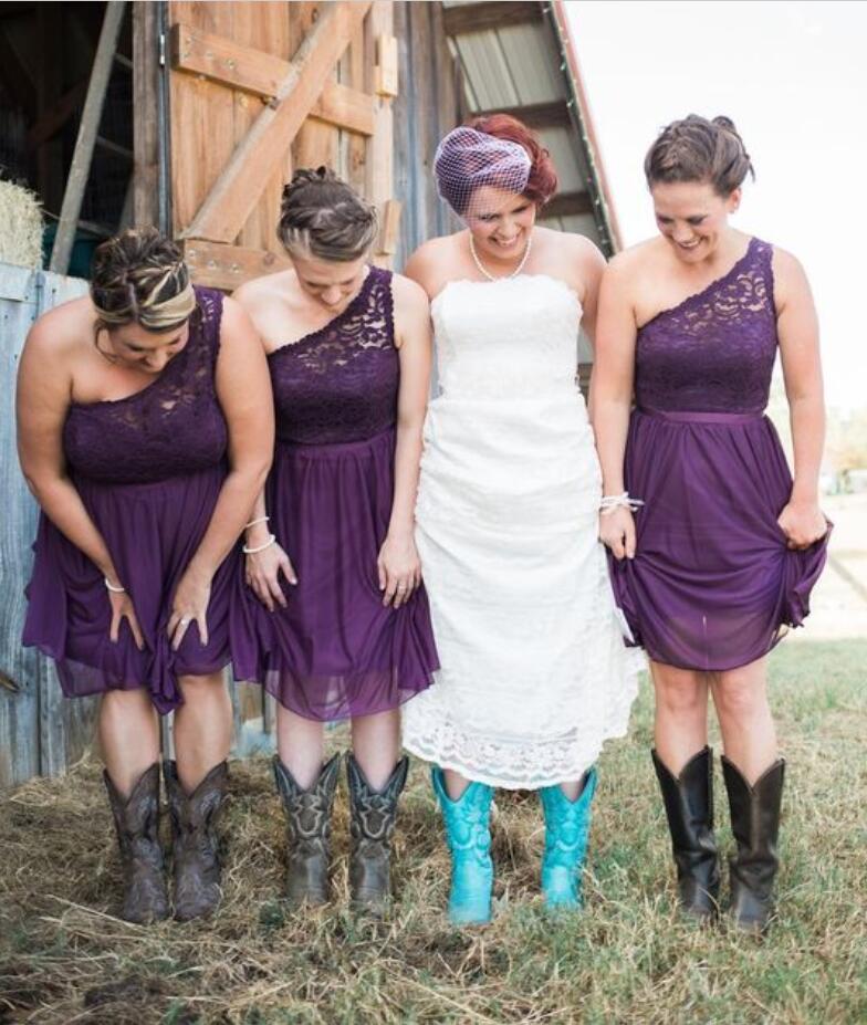GBD251 Short Grape One Shoulder Country Bridesmaid Dress with Cowboy Boots