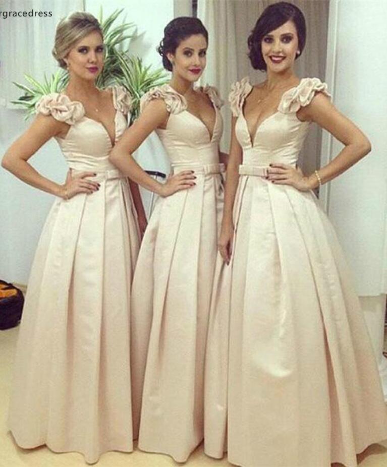GBD272 Light Champagne V Neck Classic Fall Bridesmaid Dress