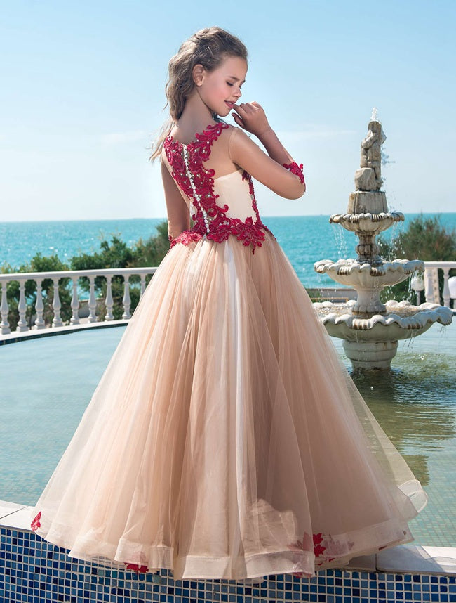 Half Sleeve RED-Lace Flower Girl Dress BDCHK027