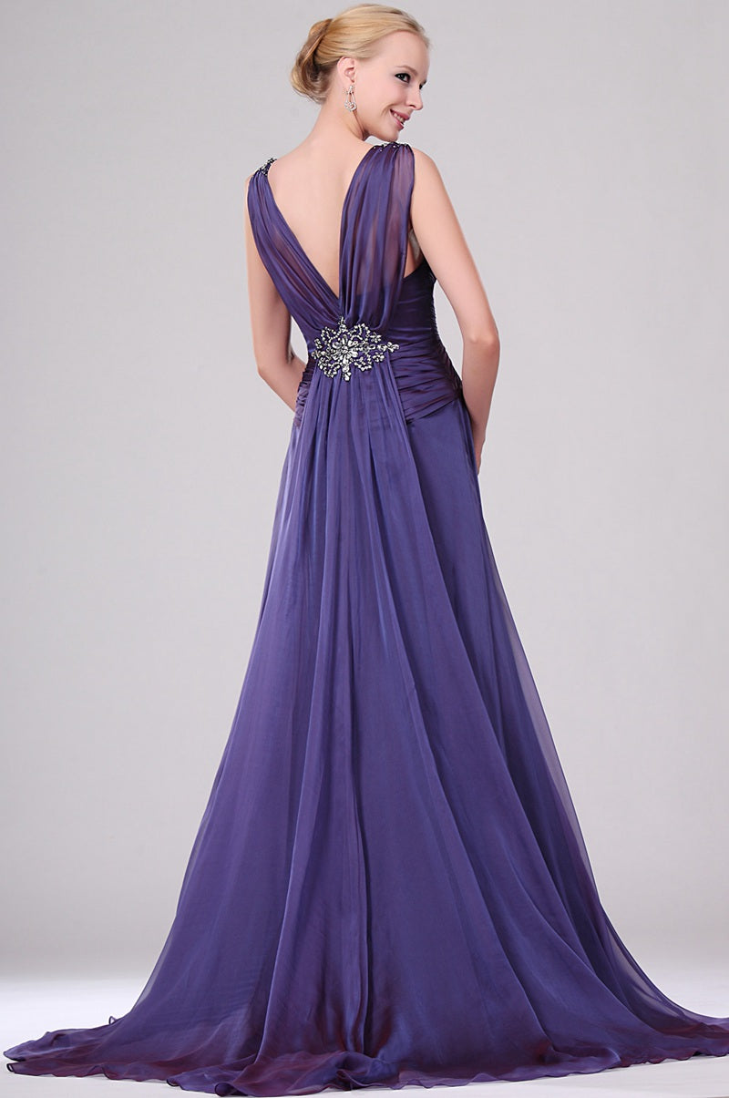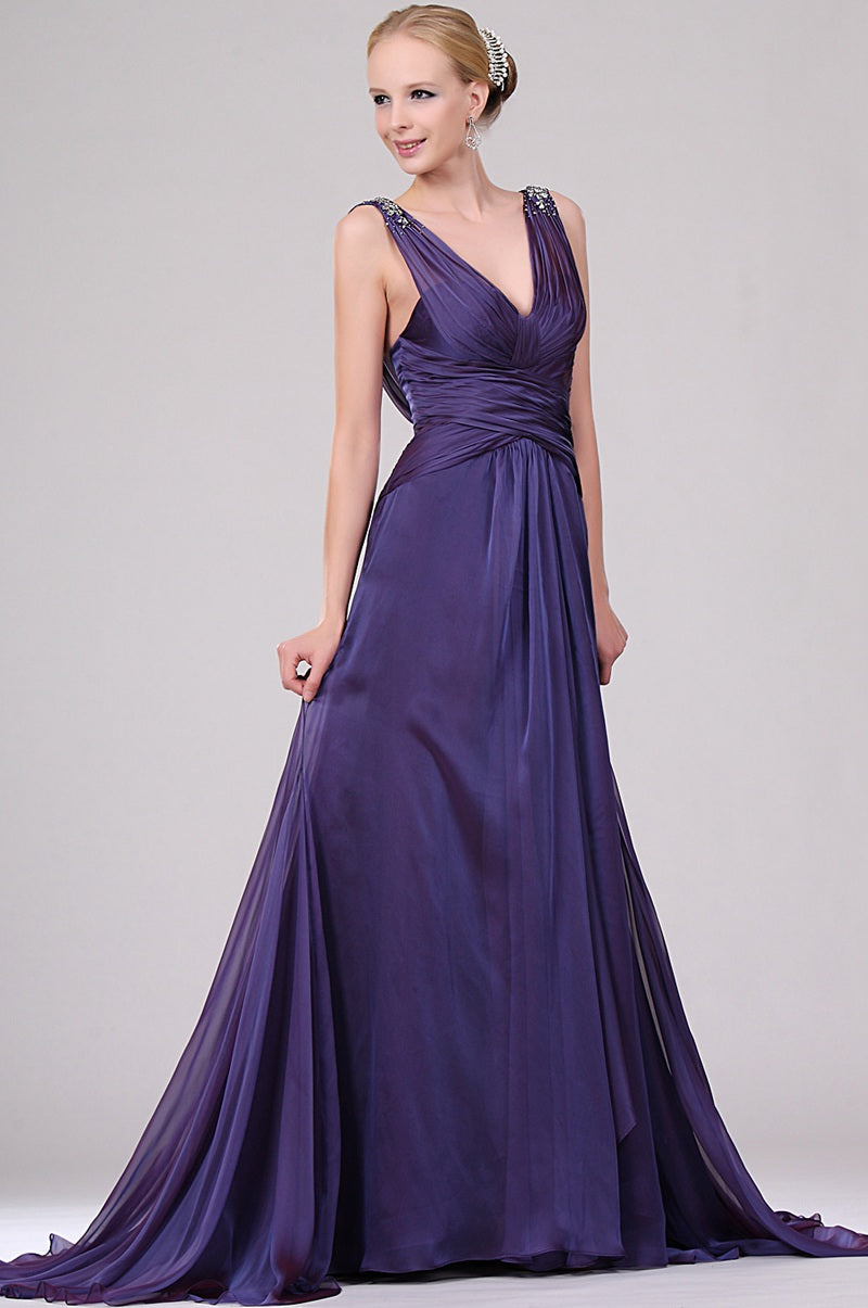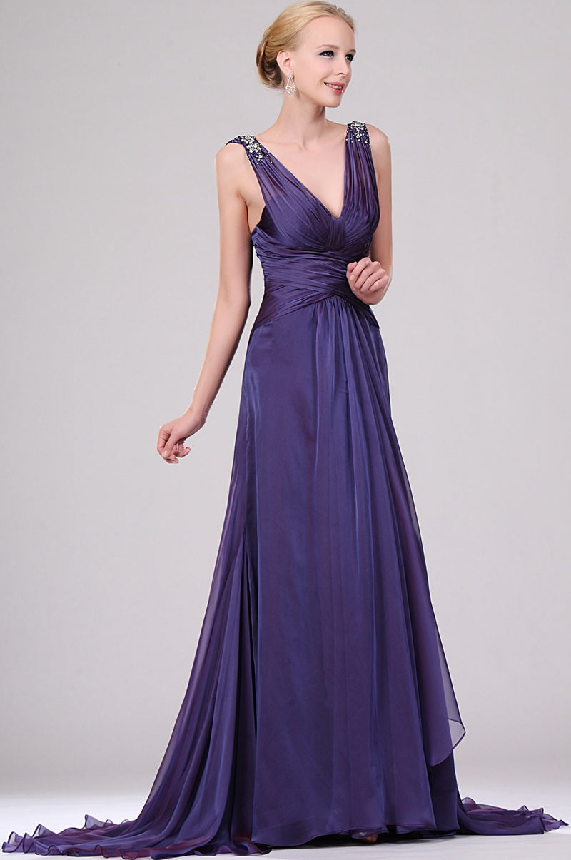 Lavender Velvet Chiffon A-line V-neck With Beading Bridesmaid Dress(UKBD03-458)