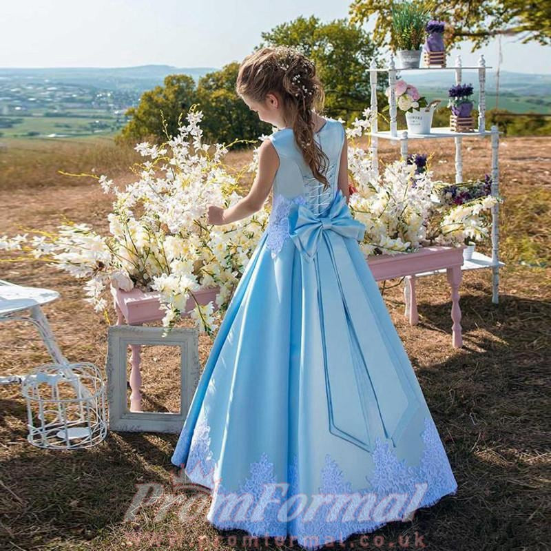 Light Blue Girls Pageant Kid Birthday Party Dress with Bows FGD462