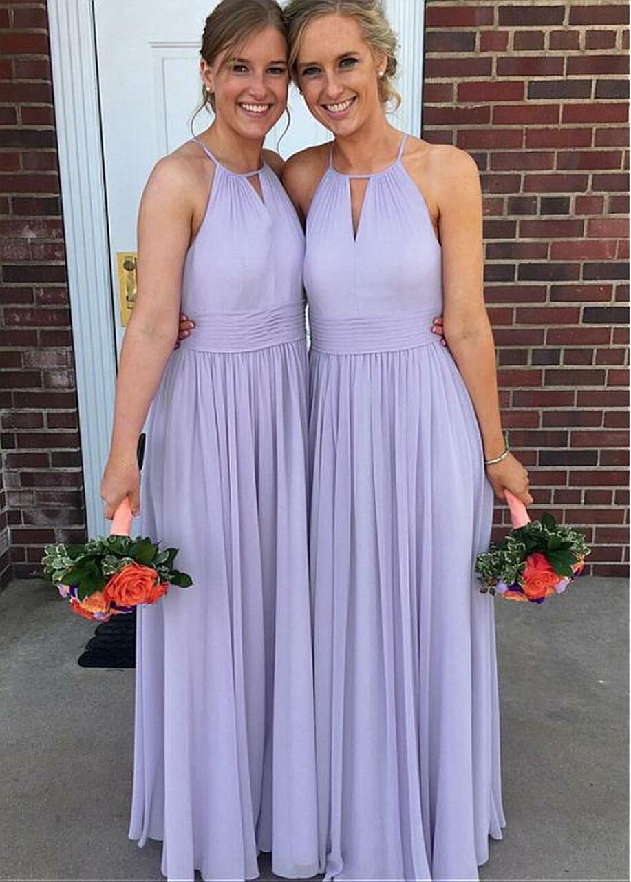 Lilac Floor Length Halter Bridesmaid Dress GBD042