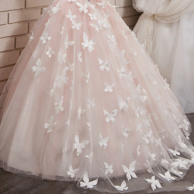 Long Sleeve Kids Flower Girl Dress with Butterfly Lace BDCH0115