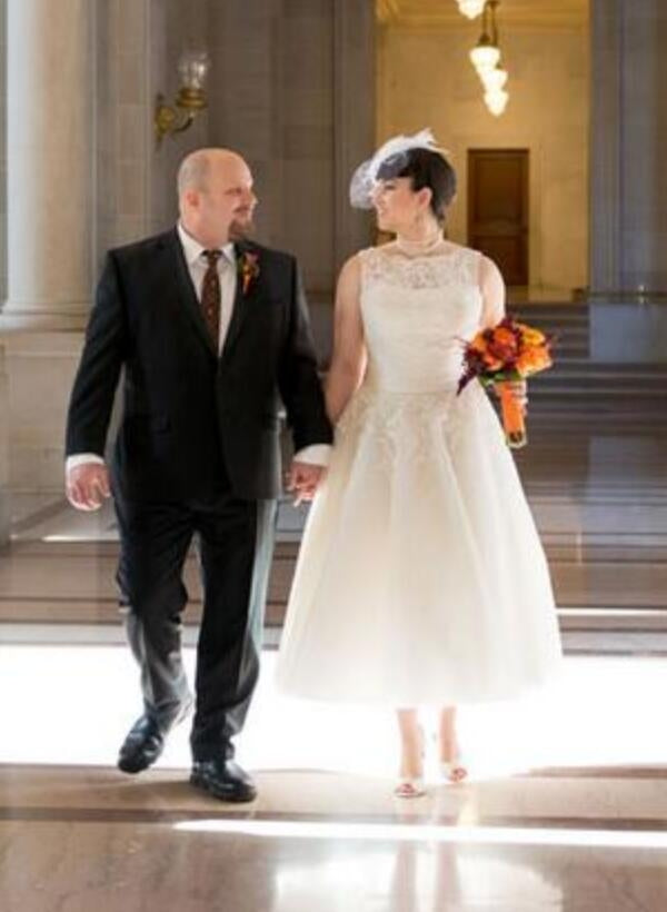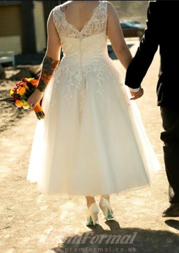 Plus Size Tea Length 1950s Rockabilly Lace Wedding Dress Old Lady London BWD121