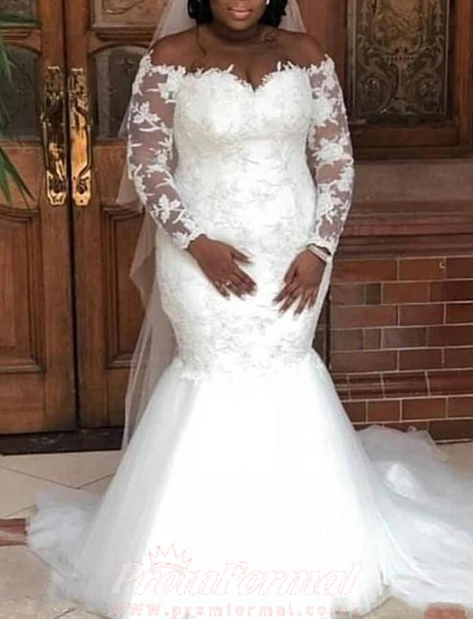 Plus Size Long Sleeve Lace Applique Mermaid Wedding Dresses BWD004