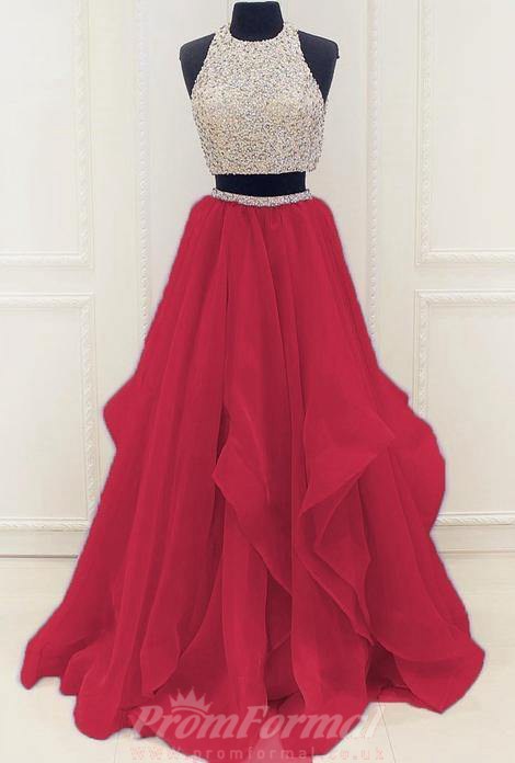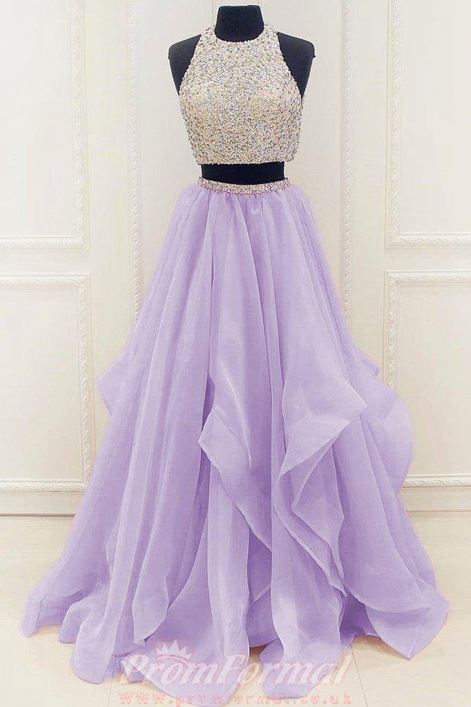 Princess Two Piece High Neck Lilac Prom Dress With Beading JTA9301