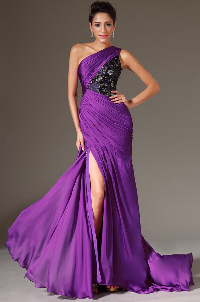Purple Trumpet/Mermaid One Shoulder With Split Front Bridesmaid Formal Dress(BDJT1322)