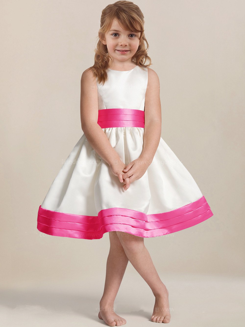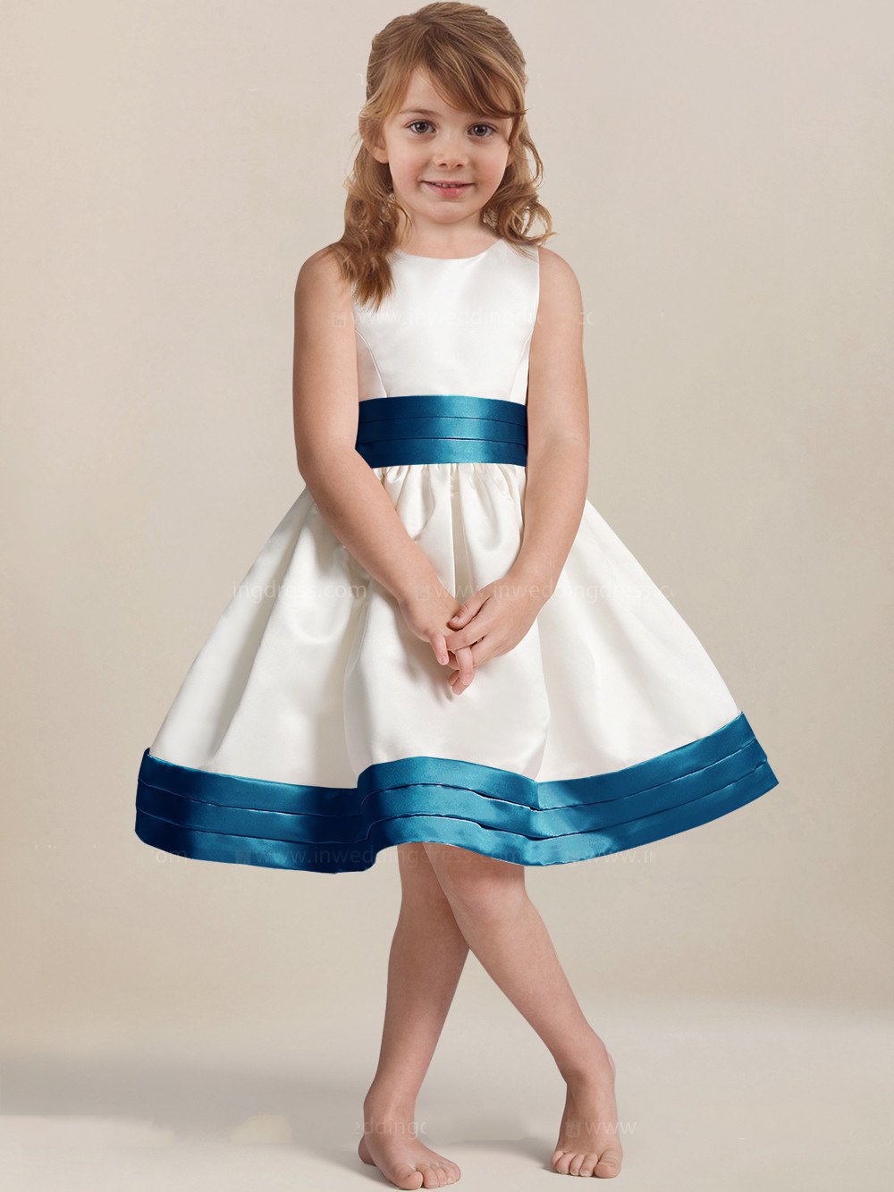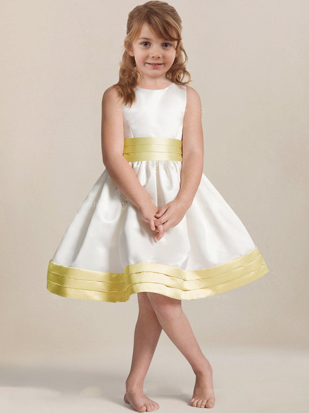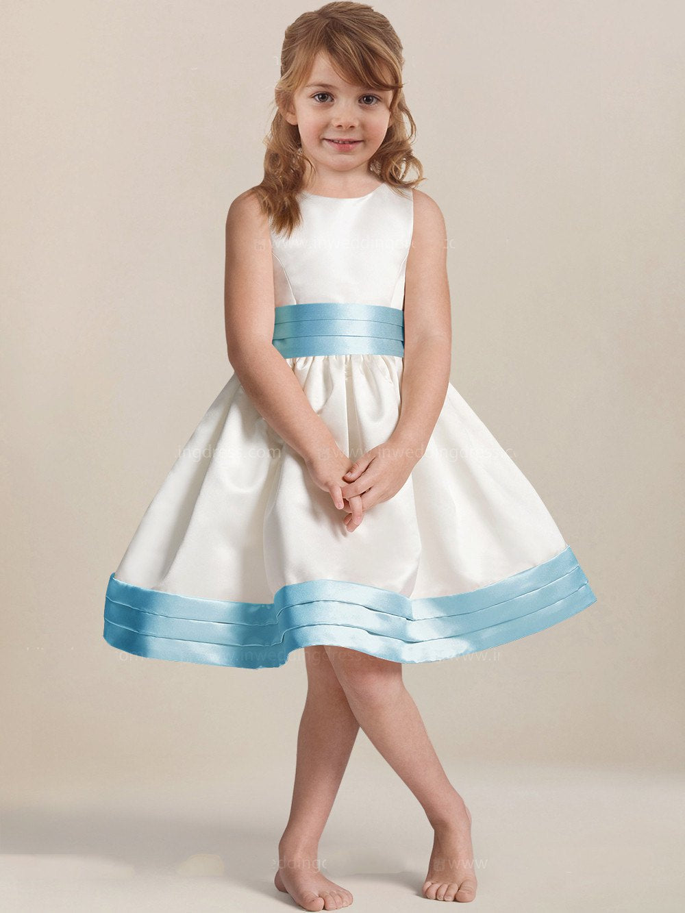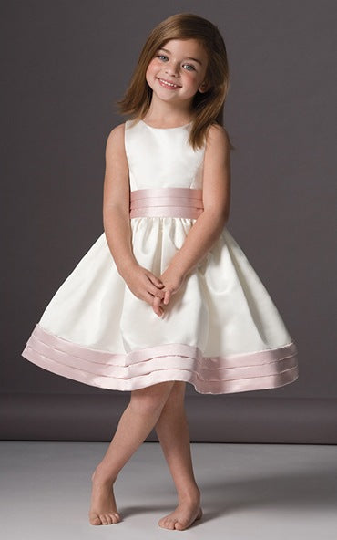 Satin A-line Knee-length White Flower Girl Dress BDFGD439