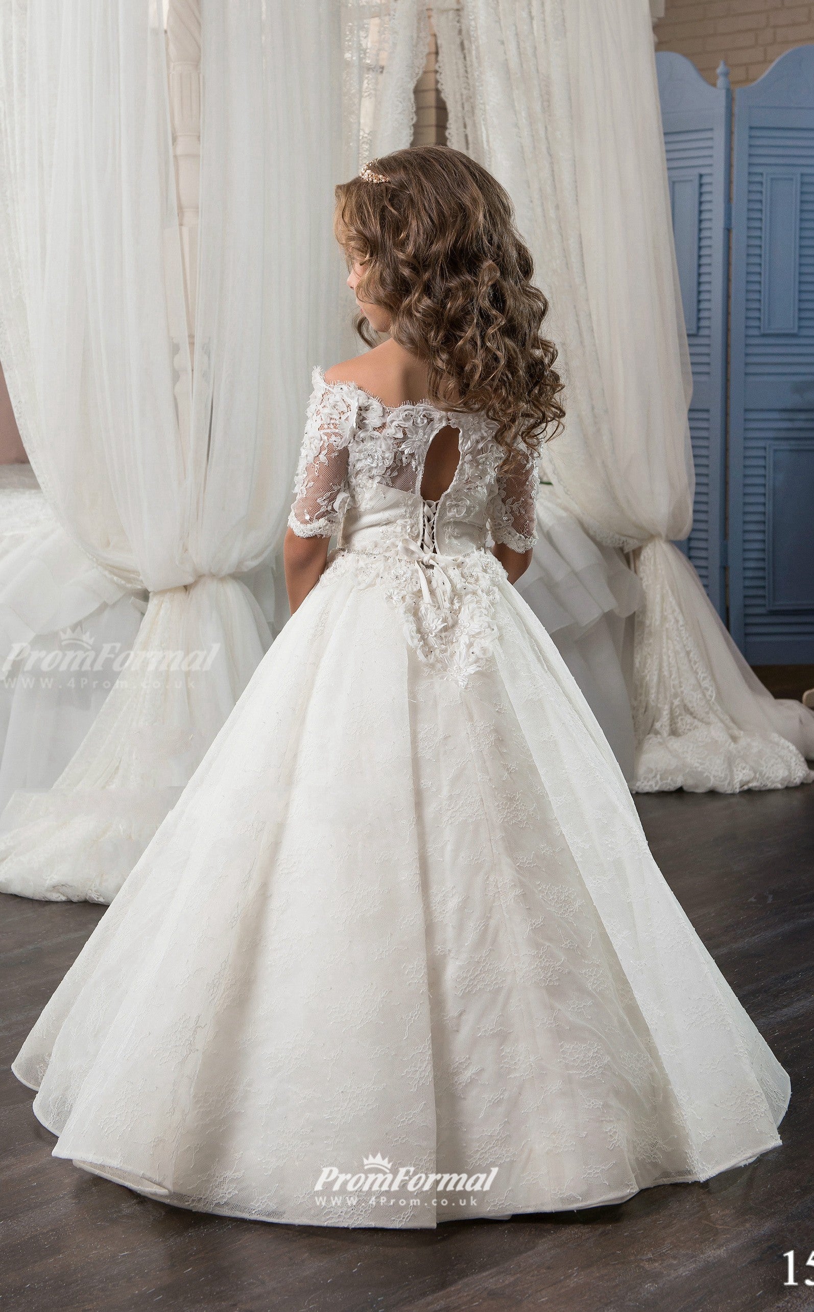 Satin Lace Princess off the Shoulder Half Sleeve Dress for 6-10 years olds CHK155