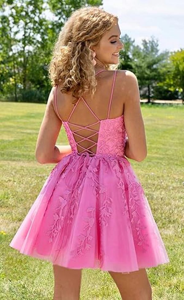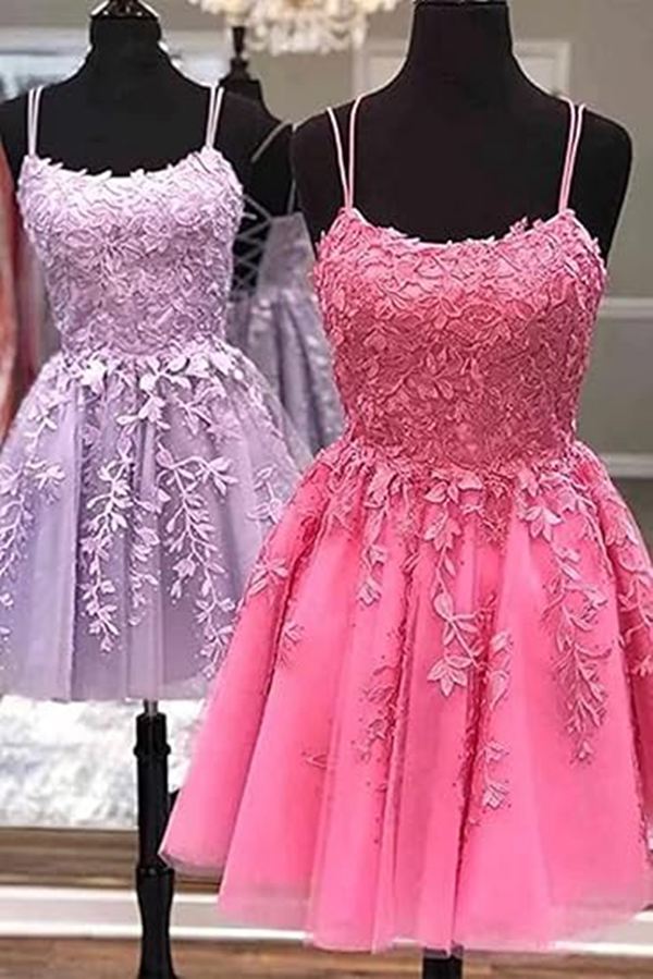 Short Straps Purple Junior Lace Prom Dress SHORT149