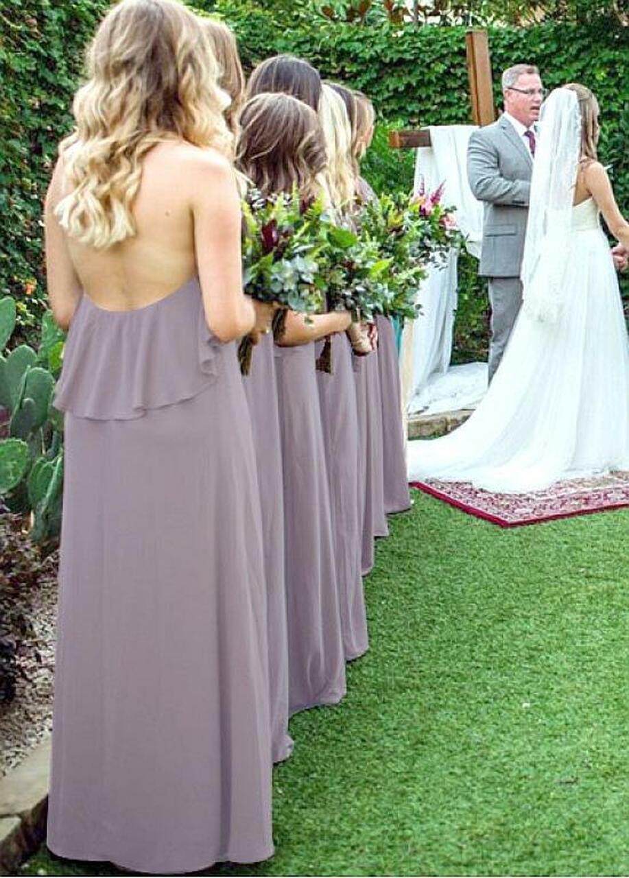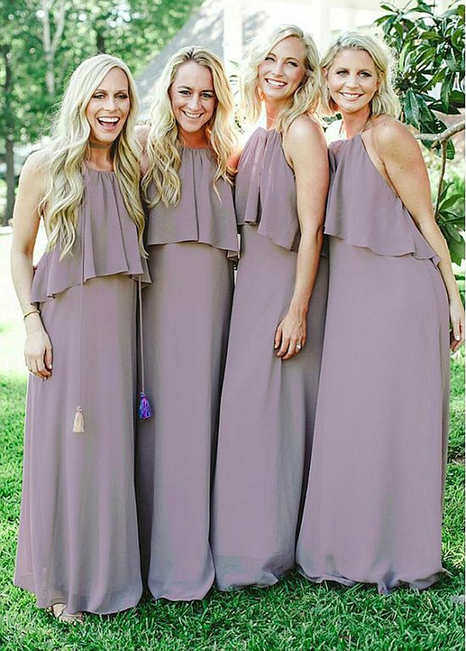 Simple Gray Halter Country Bridesmaid Dress GBD078