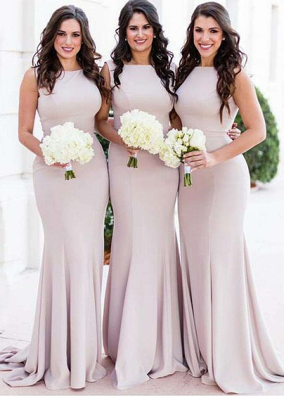 Simple Mermaid Light Champagne Floor Length Bridesmaid Dress GBD094