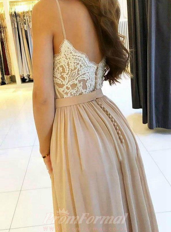 Champagne Spaghetti Straps Chiffon Prom Dress With Side Split JTA9411