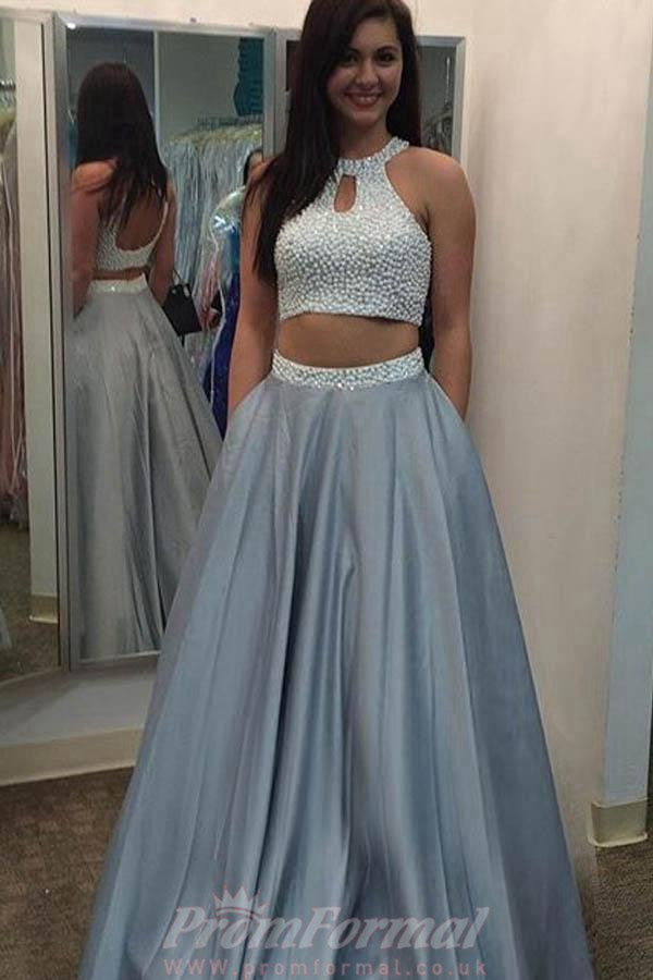 Two Piece A Line Halter Beading Prom Dress JTA5331