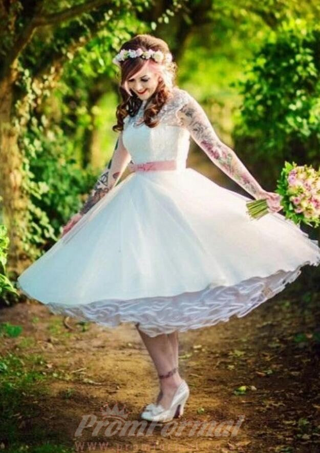 Vintage Country Plus Size Tea Length 50s Rockabilly Wedding Dress Edinburgh BWD127
