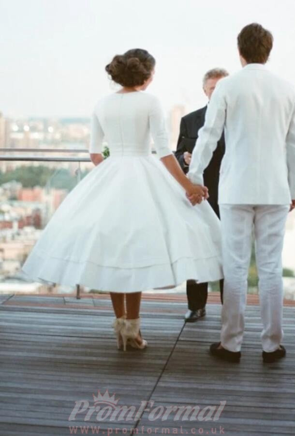 V neck Half Sleeve Tea Length Pinup Plunge 50s Style Rockabilly Wedding Dress BWD168