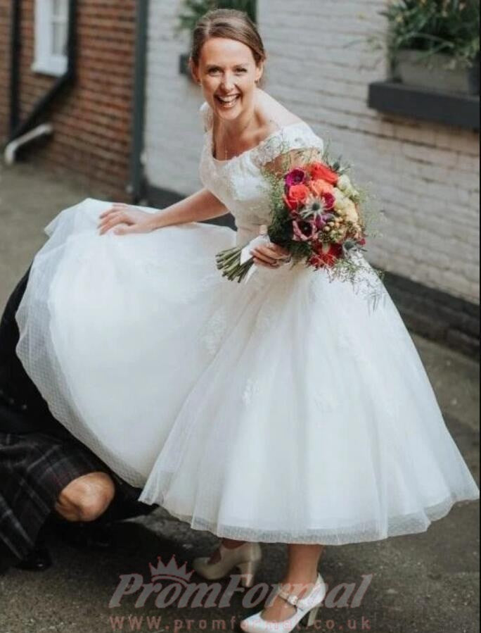 Vintage Plus Size Tea Length 50s Lace Rockabilly Wedding Dress BWD170