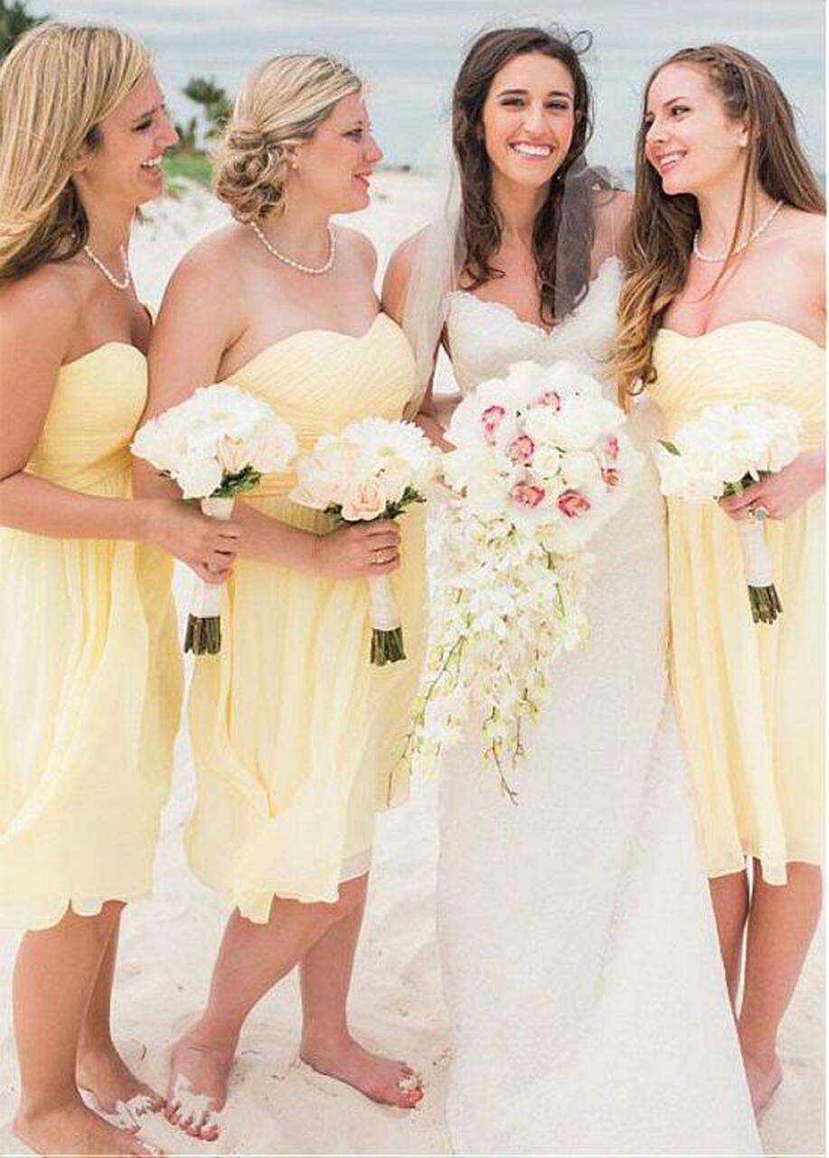 Yellow Knee Length Sweetheart Bridesmaid Dress GBD033